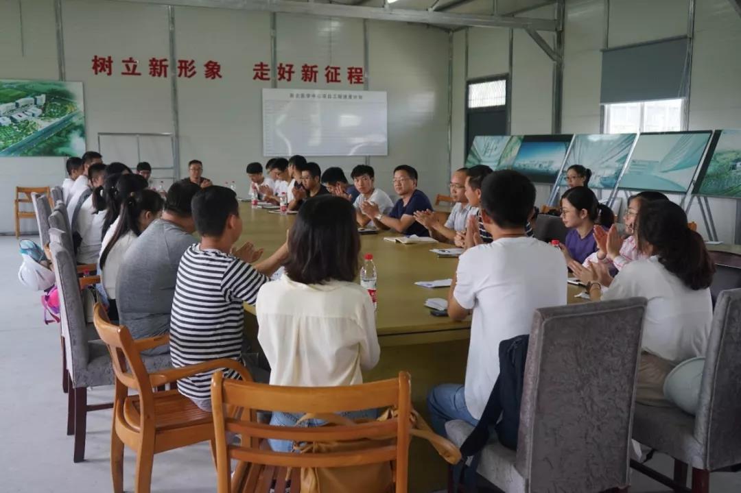活動(dòng)交流中,項目負責人帶領(lǐng)新進(jìn)員工們走近項目現場(chǎng),通過(guò)實(shí)地參觀(guān)、現場(chǎng)講解等形式,使新進(jìn)員工們對工程概況、項目建設、現場(chǎng)布置及新型工藝等方面的情況有了較為全面的了解。實(shí)地參觀(guān)后,新進(jìn)員工們在項目現場(chǎng)開(kāi)展了面對面交流與學(xué)習,結合自身工作談了感想體會(huì )。
